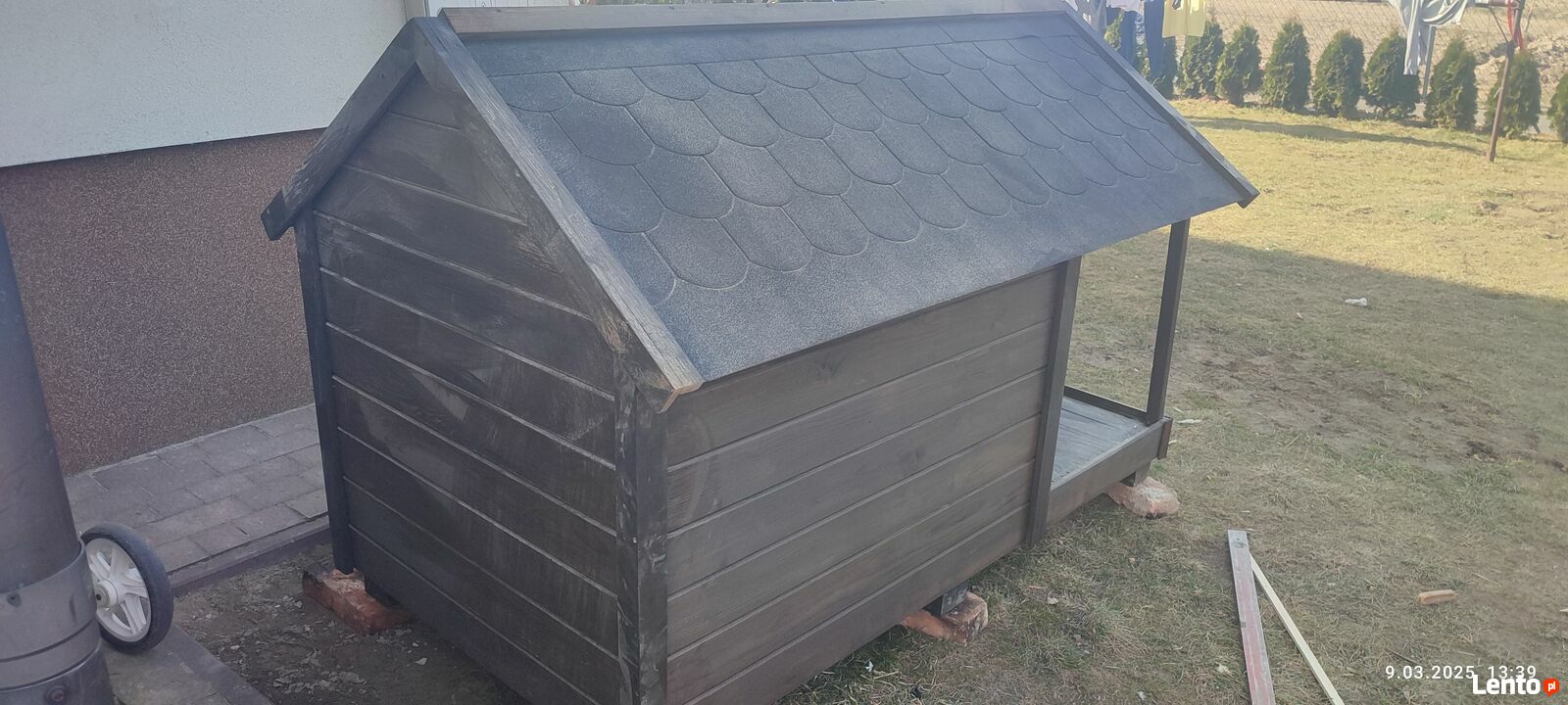 Mam na sprzedaż własnoręcznie wykonaną budę dla psa. Buda jest ocieplona styropianem 4 cm zarówno podłoga jak też ściany. Dach pokryty jest gontem bitumicznym. Wymiary wewnętrzne: dł.117 cm, szer 93cm oraz wysokość 78cm w najniższym punkcie ,w szczycie 110 cm. Wymiary wejścia 35 szerokość i 43 wysokość.Calkowita długość budy po dachu 212 cm.Buda posiada zadaszone legowisko o wymiarach 73/103 .Buda wykonana z sosnowych desek o grubości 2cm plus .Dodatkowo dach jest otwierany co ułatwia dostęp do wnętrza budy.Buda dostępna od ręki .731 - pokaż numer telefonu - Mozliwy transportMaciej
